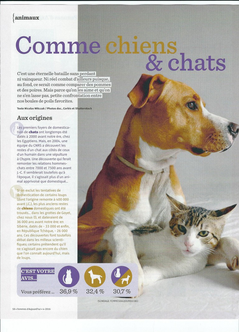 Evénements passésArticle Comme Chiens & Chats / Femmes d’Aujourd’hui Nr 4 du 28.01.2016Anne-Sophie Muffat28 janvier 2016